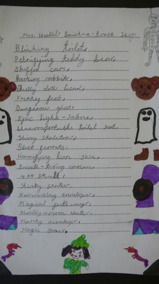 Year 3 wrote list poems and mystery stories after visiting the Bric-a-Brac shop