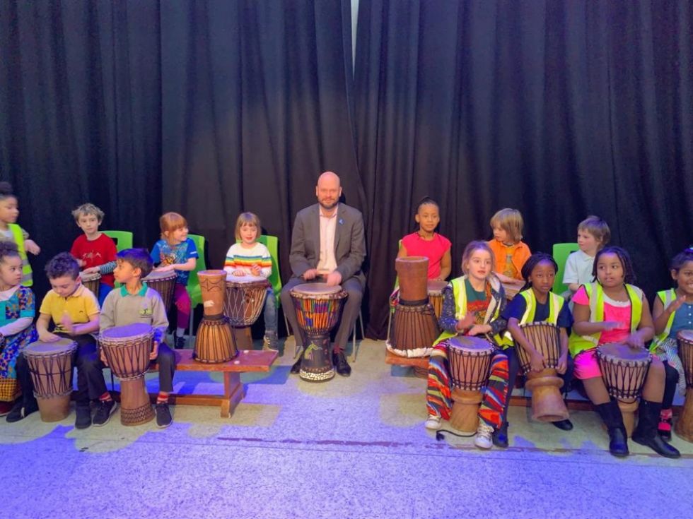 Hackney's Mayor came to see our end of term drumming and dance performance and liked it so much he joined in!
