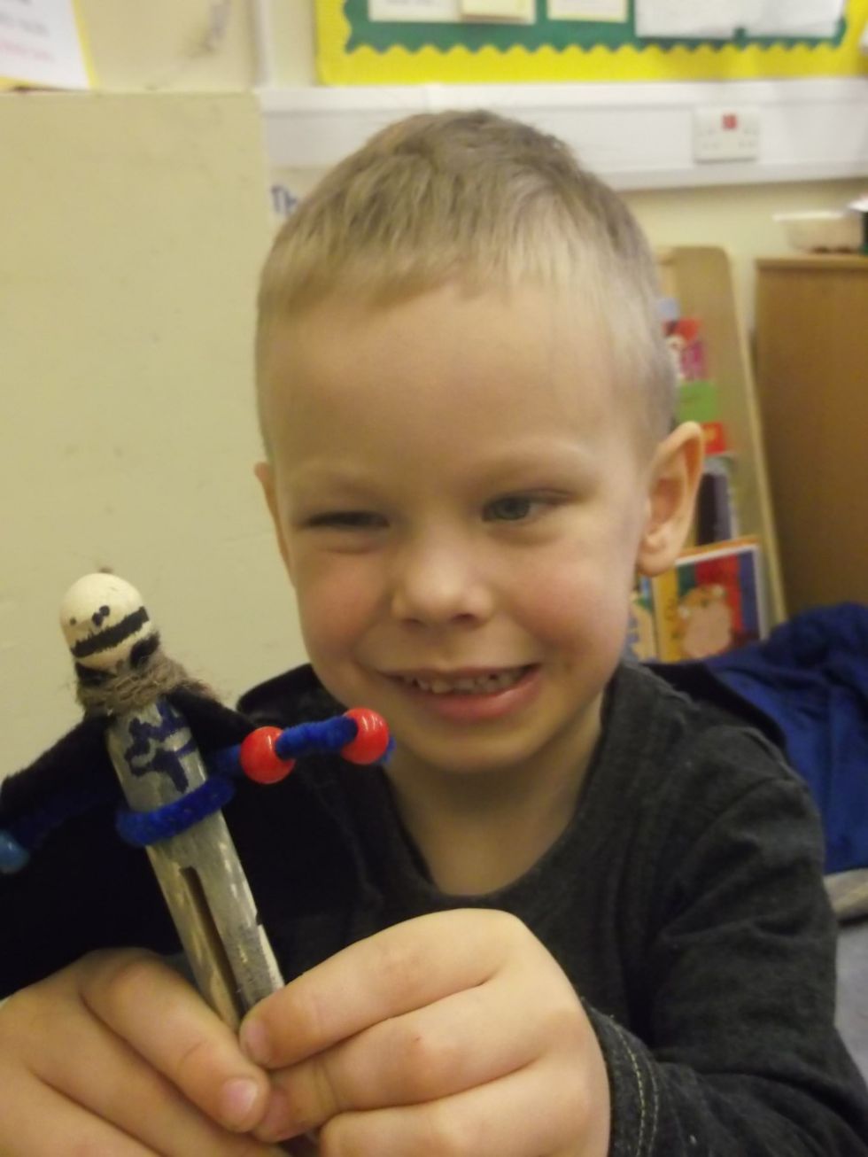 We made superheroes and princesses out of pegs as well as making cars out of bottles and wood. We got to use a saw to cut the wood!
